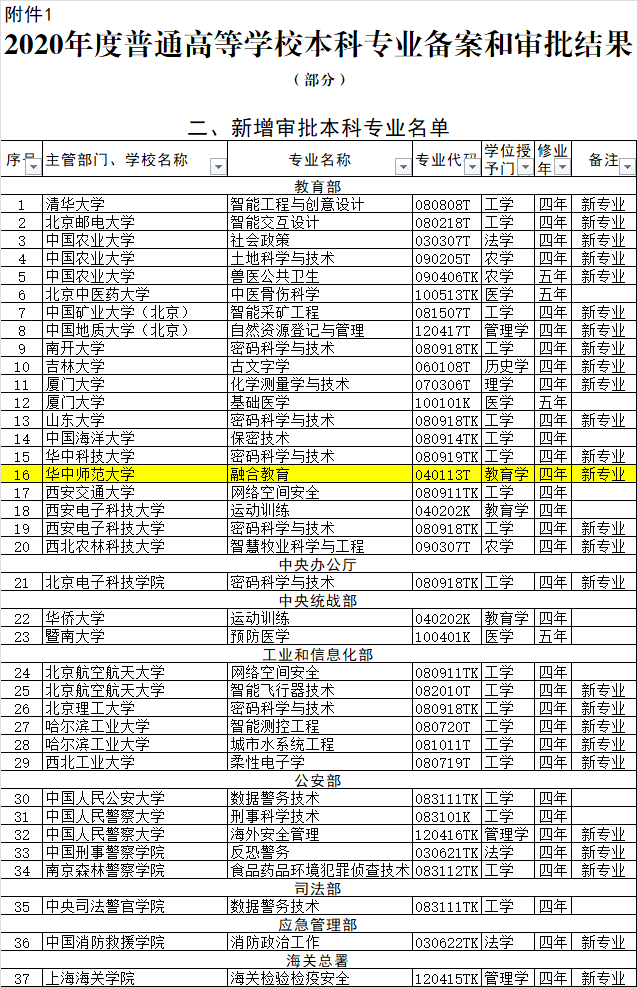 1.2020年度普通高等學(xué)校本科專(zhuān)業(yè)備案和審批結(jié)果