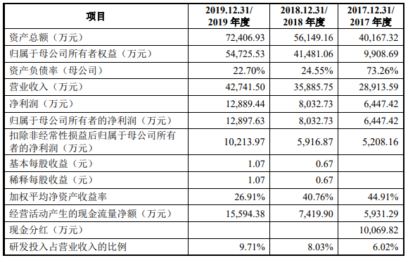 在營收與利潤方面,2017年至2019年,翔宇醫(yī)療的營收和歸母凈利潤持續(xù)增長。數據顯示,這三年其營收分別為2.89億元、3.59億元、4.27億元,同期歸母凈利潤分別為0.64億元、0.80億元、1.29億元。2020年上半年,翔宇醫(yī)療實現營收1.86億元,營業(yè)利潤同比增加3222.83萬元,增幅為57.12%。