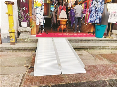 ▲清河坊某商鋪門口,鋪上了無障礙臨時坡道