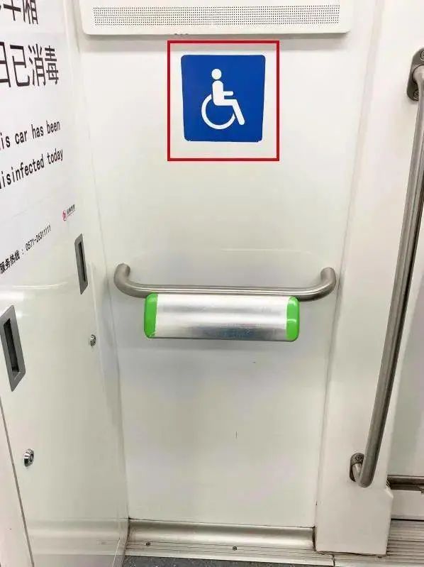 殘疾人專用靠扶位:為保障輪椅人士的乘車安全,每節(jié)列車車廂均設(shè)有專用靠扶位,并在對應(yīng)的屏蔽門設(shè)置無障礙標(biāo)識。