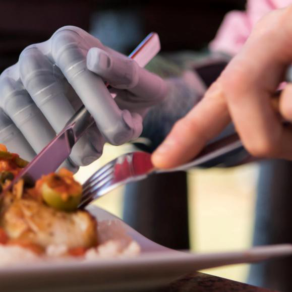 ●產(chǎn)品簡介:Touch Bionics通過應(yīng)用程序?qū)︻A(yù)設(shè)動作進行編程,例如握住杯子,在選定后佩戴者就可通過彎曲肌肉,由神經(jīng)向假肢發(fā)出電信號來握住杯子,甚至可以使用手指來操作智能手機和平板電腦。