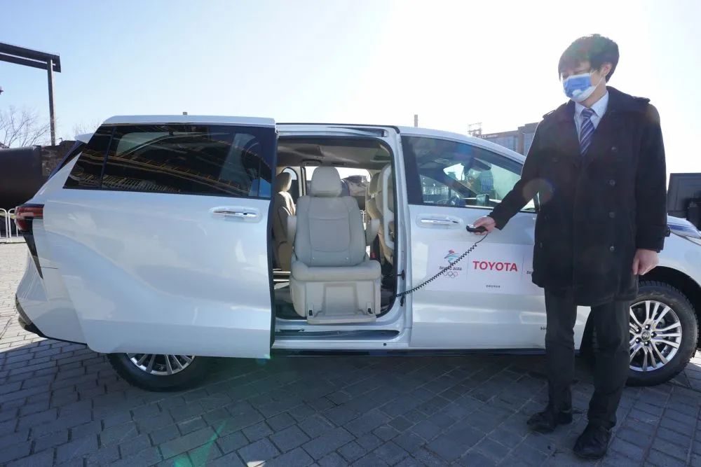 11月12日,北京2022年冬奧會和冬殘奧會賽事服務(wù)車輛交付,工作人員在演示賽事服務(wù)車輛上的無障礙座椅。新華社記者 鞠煥宗 攝