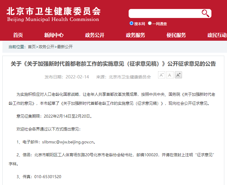 為實(shí)施積極應(yīng)對(duì)人口老齡化國(guó)家戰(zhàn)略,讓老年人共享首都改革發(fā)展成果,北京市起草了《關(guān)于加強(qiáng)新時(shí)代首都老齡工作的實(shí)施意見(jiàn)(征求意見(jiàn)稿)》(以下簡(jiǎn)稱《征求意見(jiàn)稿》),目前正向社會(huì)公開(kāi)征求意見(jiàn)。該《征求意見(jiàn)稿》包含完善就近精準(zhǔn)養(yǎng)老服務(wù)體系、構(gòu)建綜合連續(xù)老年健康支撐體系、支持老年人社會(huì)參與、推進(jìn)老年友好型社會(huì)建設(shè)、發(fā)展銀發(fā)經(jīng)濟(jì)等八個(gè)方面。其中提出,到2025年,本市擬在居家照護(hù)需求相對(duì)集中的城市社區(qū),建設(shè)不少于10000張養(yǎng)老家庭照護(hù)床位,同時(shí),建立適合本市實(shí)際的“互聯(lián)網(wǎng)+護(hù)理服務(wù)”發(fā)展模式。安寧療護(hù)服務(wù)供給也將持續(xù)擴(kuò)大,到2025年,本市每個(gè)區(qū)至少設(shè)立1所安寧療護(hù)中心,全市提供安寧療護(hù)服務(wù)的床位不少于1800張。