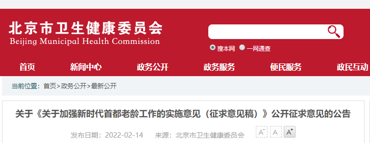 關(guān)于《關(guān)于加強(qiáng)新時代首都老齡工作的實施意見(征求意見稿)》公開征求意見的公告