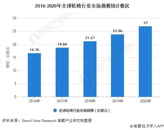 由于人口老齡化,老年醫(yī)學人口的增加對輪椅市場需求的擴張,以及車禍數(shù)量的增加,全球輪椅市場規(guī)模逐年上升。