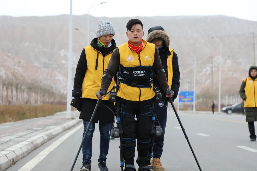 身著這款新一代大艾Ai外骨骼機器人的,是患有截癱的殘疾人優(yōu)秀代表邵海朋。2017年,邵海朋因高空墜落導(dǎo)致截癱,雙下肢失去行走功能,只能借助輪椅出行。面對不幸,邵海朋表現(xiàn)出堅韌而積極樂觀的品格,一直堅持使用大艾外骨骼機器人康復(fù)訓(xùn)練。2018年,邵海朋參加“科技助殘”穿越“一帶一路”機器人行走馬拉松公益挑戰(zhàn)賽,以9天、26小時的好成績穿戴外骨骼機器人走完全程馬拉松,打破了國外保持的15天走完機器人行走馬拉松的世界紀(jì)錄,借助科技的力量,實現(xiàn)自我超越,創(chuàng)造屬于中國人的奇跡與歷史!期間從新疆克州、西安、北京、南京跨越5000多公里,克服帕米爾高原嚴(yán)寒風(fēng)雪、長時間行走身體不適等諸多困難,展現(xiàn)了中國殘障人士自強不息的奮斗精神。2019年,通過不斷的康復(fù)努力,邵海朋已經(jīng)能在拐杖輔助下重新行走。