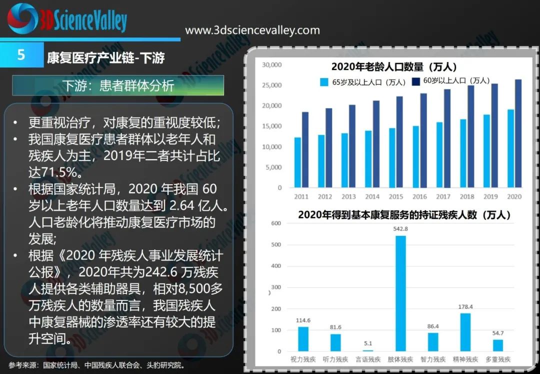基于我國(guó)龐大的殘疾人與老年人群體,我國(guó)康復(fù)輔助器具市場(chǎng)具有需求人數(shù)多、市場(chǎng)潛力大的特點(diǎn)。近年來(lái),3D打印、仿生、人工智能、虛擬現(xiàn)實(shí)等新興技術(shù),正在加速融入康復(fù)輔具領(lǐng)域,為康復(fù)輔助器具的創(chuàng)新與發(fā)展提供了新動(dòng)力。