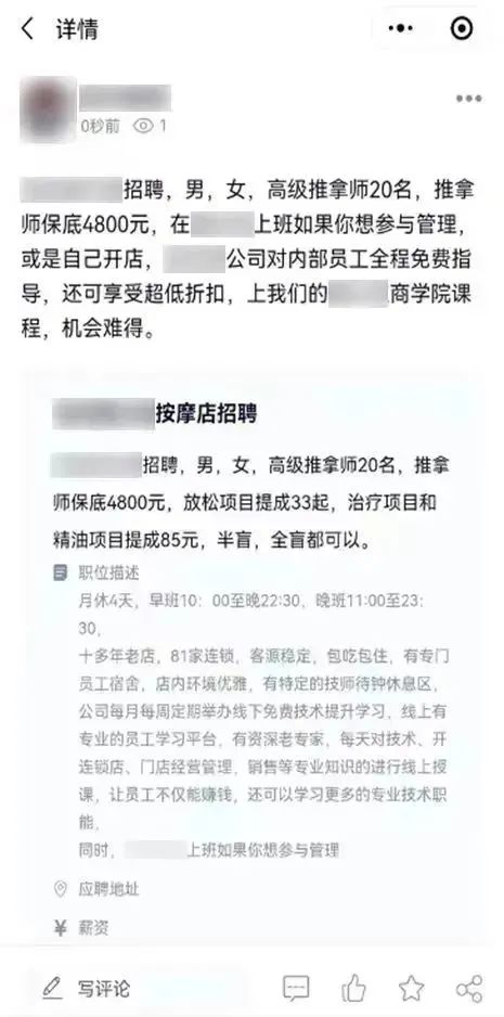 在啟明圈小程序上,大量面向視障群體的工作崗位實(shí)現(xiàn)了精準(zhǔn)對(duì)接——眾多盲人按摩店店主在這里發(fā)送招聘信息,而視障用戶則在這里通過無障礙優(yōu)化技術(shù)閱讀各類招聘信息并找到合適的工作機(jī)會(huì)。