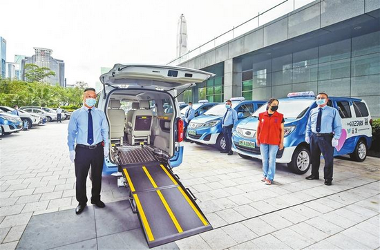 除了地鐵方面的交通設(shè)施,深圳目前也投放了60臺無障礙出租車,無障礙出租車擁有上下車輔助電動踏板、輪椅固定裝置等無障礙附屬設(shè)施。有需求的人士可提前12小時(shí)進(jìn)行用車預(yù)約。