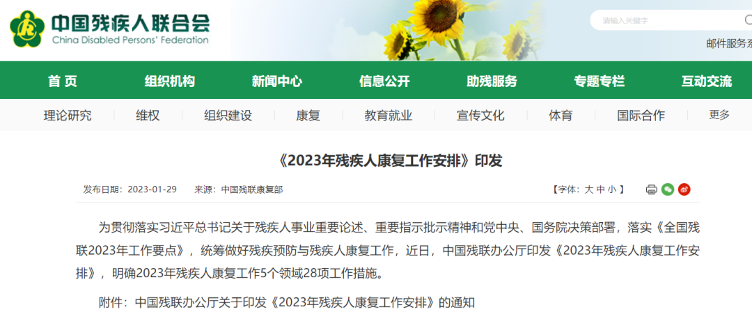 近日,中國殘聯(lián)辦公廳印發(fā)《2023年殘疾人康復(fù)工作安排》,明確2023年殘疾人康復(fù)工作5個(gè)領(lǐng)域28項(xiàng)工作措施?!豆ぷ靼才拧访鞔_要求辦好中國國際福祉博覽會(huì),開展先進(jìn)殘疾人輔助器具產(chǎn)品與康復(fù)技術(shù)展示、交流。