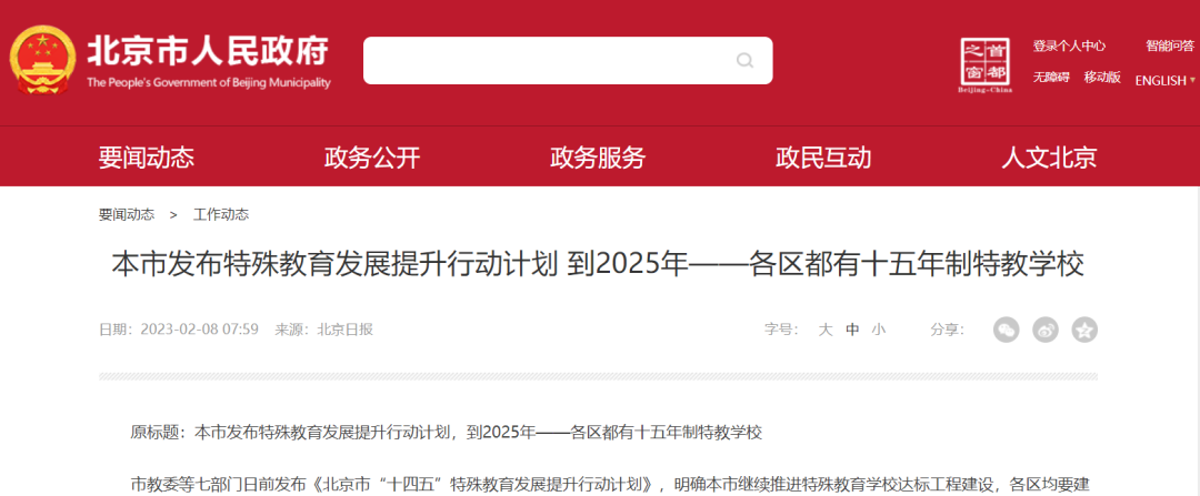 北京市教委等七部門近日發(fā)布的《北京市“十四五”特殊教育發(fā)展提升行動(dòng)計(jì)劃》明確,到2025年,北京市特殊教育體系進(jìn)一步完善,各區(qū)均要建有一所從幼兒園到高中全學(xué)段銜接的十五年制特殊教育學(xué)校,并根據(jù)不同學(xué)段、不同專業(yè)配足配齊特教教師。