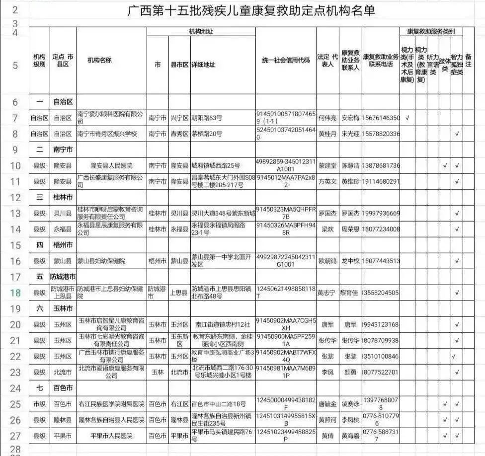 2月22日,記者從廣西壯族自治區(qū)殘疾人聯(lián)合會(huì)了解到,根據(jù)《廣西殘疾兒童康復(fù)救助制度建設(shè)工作領(lǐng)導(dǎo)小組辦公室關(guān)于公布第十五批殘疾兒童康復(fù)救助定點(diǎn)機(jī)構(gòu)的通知》,廣西有15家機(jī)構(gòu)榜上有名,其中2家機(jī)構(gòu)獲批自治區(qū)級(jí)殘疾兒童康復(fù)救助定點(diǎn)機(jī)構(gòu)。