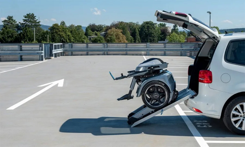 如果有遠(yuǎn)途出行的需求,這款電動(dòng)輪椅也非常方便攜帶。因?yàn)檩喴卧O(shè)有快速折疊機(jī)制,只需要一握就可以將它的靠背完全折疊起來,讓輪椅的長寬高分別變?yōu)?130/695/790mm的更緊湊尺寸。然后只需要一個(gè)滑軌,用戶就可以把這個(gè)重達(dá)162公斤的家伙塞進(jìn)汽車后備箱或是其他存儲(chǔ)空間內(nèi)。