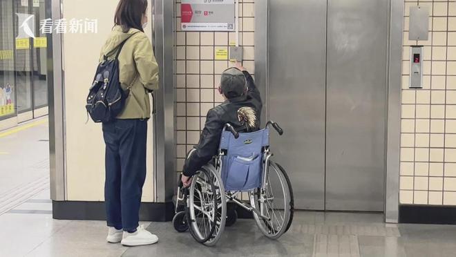在上海軌交1號線漢中路站,記者陪同輪椅出行的張老先生前去換乘13號線,可站臺旁的無障礙電梯,大門緊閉。記者找來了工作人員,對方介紹,這部電梯上去后,直接就出了站,因此平時為了防止誤出站及逃票等情況,電梯是關閉狀態(tài),如果像老張這樣確有使用需求的,呼叫工作人員后,他們會前來手動打開。