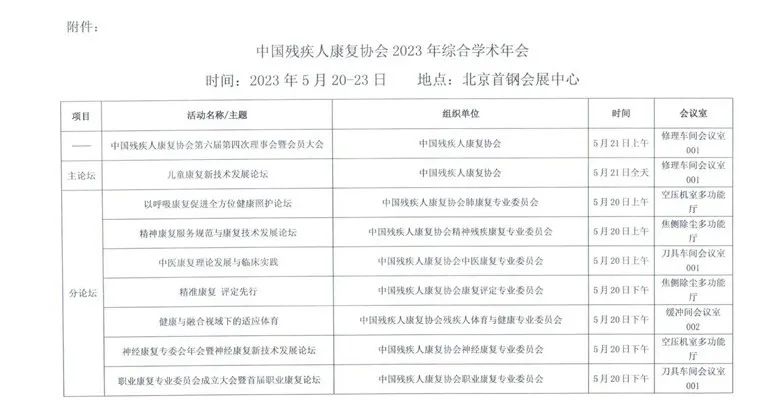 附件:中國殘疾人康復協(xié)會2023年綜合學術年會論壇安排明細表