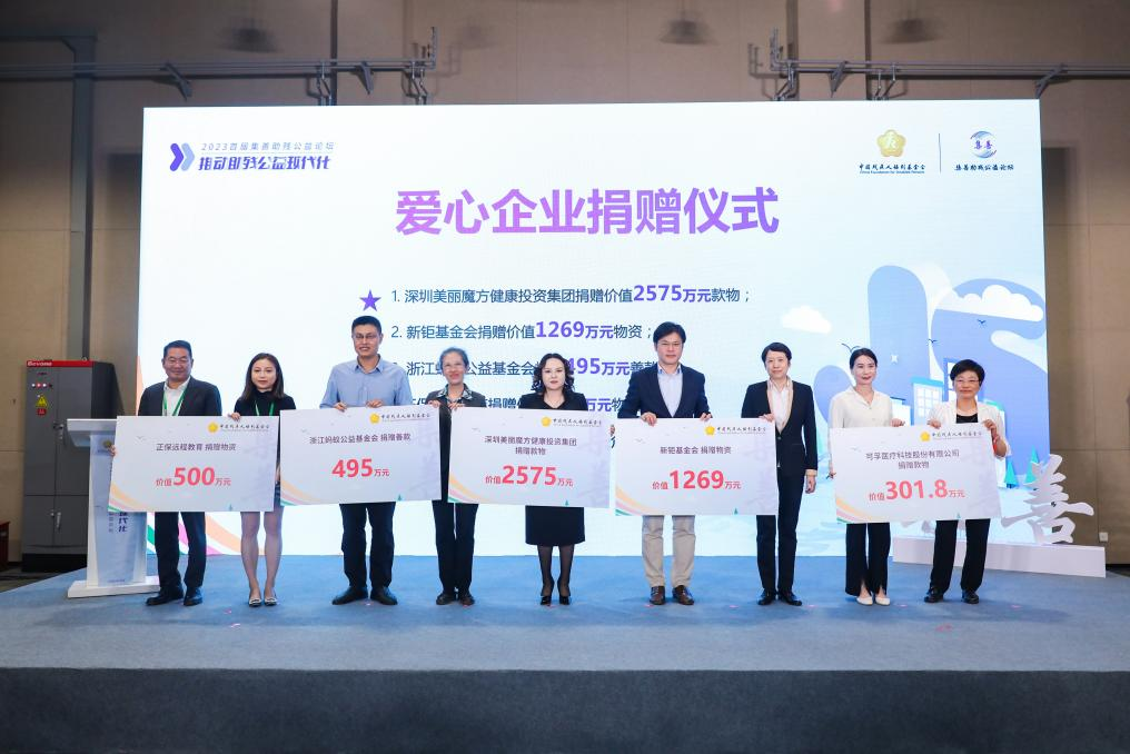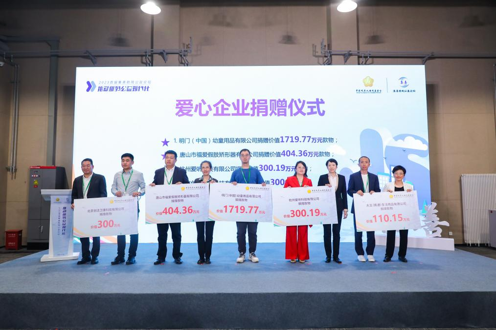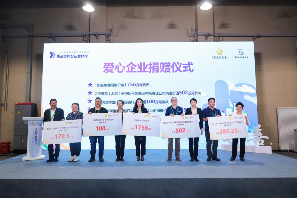 (上三圖為可孚醫(yī)療科技股份有限公司、新矩基金會、深圳美麗魔方健康投資集團、浙江螞蟻公益基金會、正保遠程教育、寶泰歐(北京)假肢矯形器商業(yè)有限責任公司、上海頌協(xié)醫(yī)療器械有限公司、如新集團、浙江諾爾康神經(jīng)電子科技股份有限公司、亞瑞科爾國際廣告?zhèn)髅剑ū本┯邢薰尽⒋笸酰贤ǎ┥钣闷酚邢薰?、杭州愛聽科技有限公司、明門(中國)幼童用品有限公司、唐山市福愛假肢矯形器有限公司、北京創(chuàng)潔衛(wèi)康科技有限公司等15家愛心企業(yè)和機構(gòu)向中國殘疾人福利基金會捐贈了總價值1.07億元的款物)