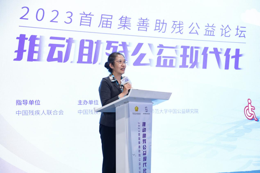 (北京師范大學中國公益研究院助理院長兼殘疾人事業(yè)研究中心主任成緋緋介紹《集善助殘公益優(yōu)秀案例(2023)》)