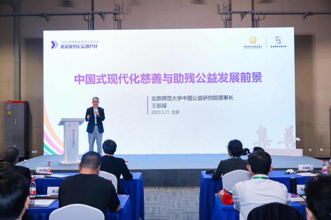 主旨演講環(huán)節(jié),北京師范大學中國公益研究院理事長王振耀以《中國式現(xiàn)代化慈善與助殘公益發(fā)展前景》為題進行主旨演講,他指出,中國的公益事業(yè)正處于快速發(fā)展的階段,推動和實現(xiàn)助殘公益現(xiàn)代化需要政府、社會組織、企業(yè)等多方的共同努力。只有通過各方面的支持和合作,才能夠?qū)崿F(xiàn)助殘公益事業(yè)的現(xiàn)代化和可持續(xù)發(fā)展。