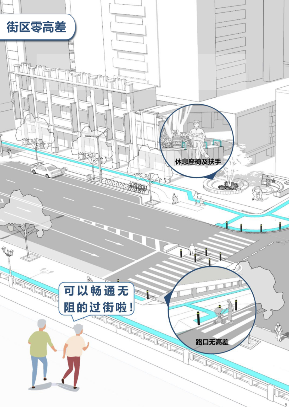 在居住區(qū)無障礙方面,《規(guī)劃》提出“高齡友善、出行便捷,兒童參與、健康安全”,做到15分鐘生活圈無障礙。結(jié)合老舊小區(qū)改造、城中村改造等工作,重點(diǎn)對(duì)老舊小區(qū)的出入口、道路、綠地、活動(dòng)場(chǎng)地、游步道、小區(qū)公共設(shè)施等進(jìn)行改造,2025年前完成全市80%老舊小區(qū)無障礙設(shè)施改造。