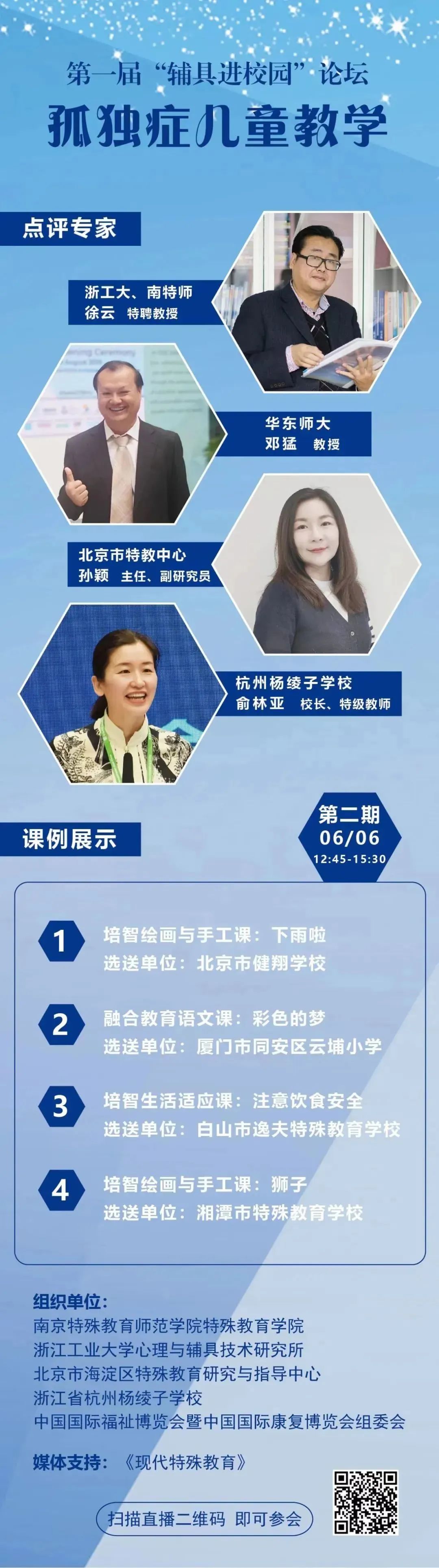 為配合實施中國殘聯(lián)、教育部聯(lián)合發(fā)布的《輔助器具進校園工程實施方案》,中國國際福祉博覽會暨中國國際康復(fù)博覽會組委會聯(lián)合南京特殊教育師范學(xué)院特殊教育學(xué)院、浙江工業(yè)大學(xué)心理與輔具技術(shù)研究所、北京市海淀區(qū)特殊教育研究與指導(dǎo)中心、浙江省杭州楊綾子學(xué)校等“輔具進校園”會議籌備組主辦的“輔具進校園”論壇四之“孤獨癥兒童教學(xué)”主題活動擬于2023年6月6日(周二 12:45-16:00)組織召開。具體如下: