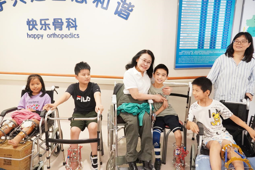 圖為張海迪慰問(wèn)正在術(shù)后康復(fù)的孩子們