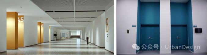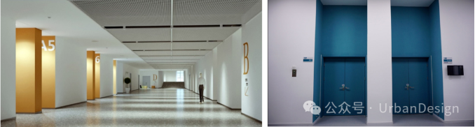 室內(nèi)通過色彩變化進(jìn)行功能分區(qū),標(biāo)識(shí)采用大字體和高對(duì)比度形式(圖 14)。