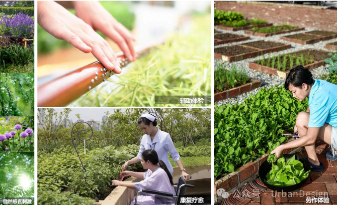 康復(fù)大學(xué)校園包容性設(shè)計(jì)中注重人的心理感受,充分發(fā)揮康復(fù)學(xué)科的特點(diǎn),利用康復(fù)醫(yī)學(xué)、康復(fù)景觀學(xué)等相關(guān)理論,借助場地、空間與陽光、空氣、植物、土地的相互作用,采用園藝療法等療愈手段,利用植物栽培與園藝操作活動(dòng)幫助有需要人士從其社會(huì)、教育、心理以及身體諸方面進(jìn)行調(diào)整更新(圖 20)。