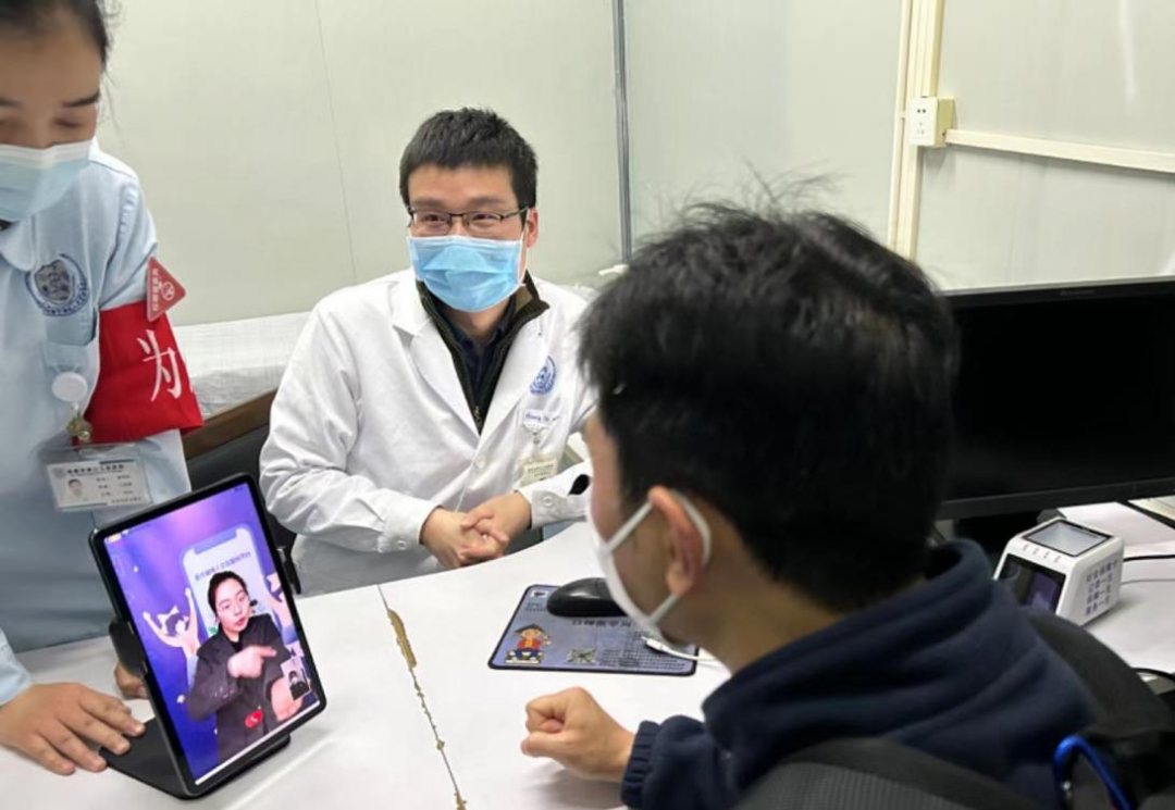 聽障患者在醫(yī)院就醫(yī)時,和醫(yī)護人員溝通中存在不少困難,為進一步改善特殊患者就醫(yī)感受、提升就醫(yī)體驗,成都市第三人民醫(yī)院率先引進智能手語在線翻譯系統(tǒng)——門診導(dǎo)醫(yī)攜帶手語在線翻譯設(shè)備全程陪同就醫(yī),問診時通過設(shè)備在線匹配專業(yè)手語老師實時翻譯,實現(xiàn)了醫(yī)患之間的高效交流。