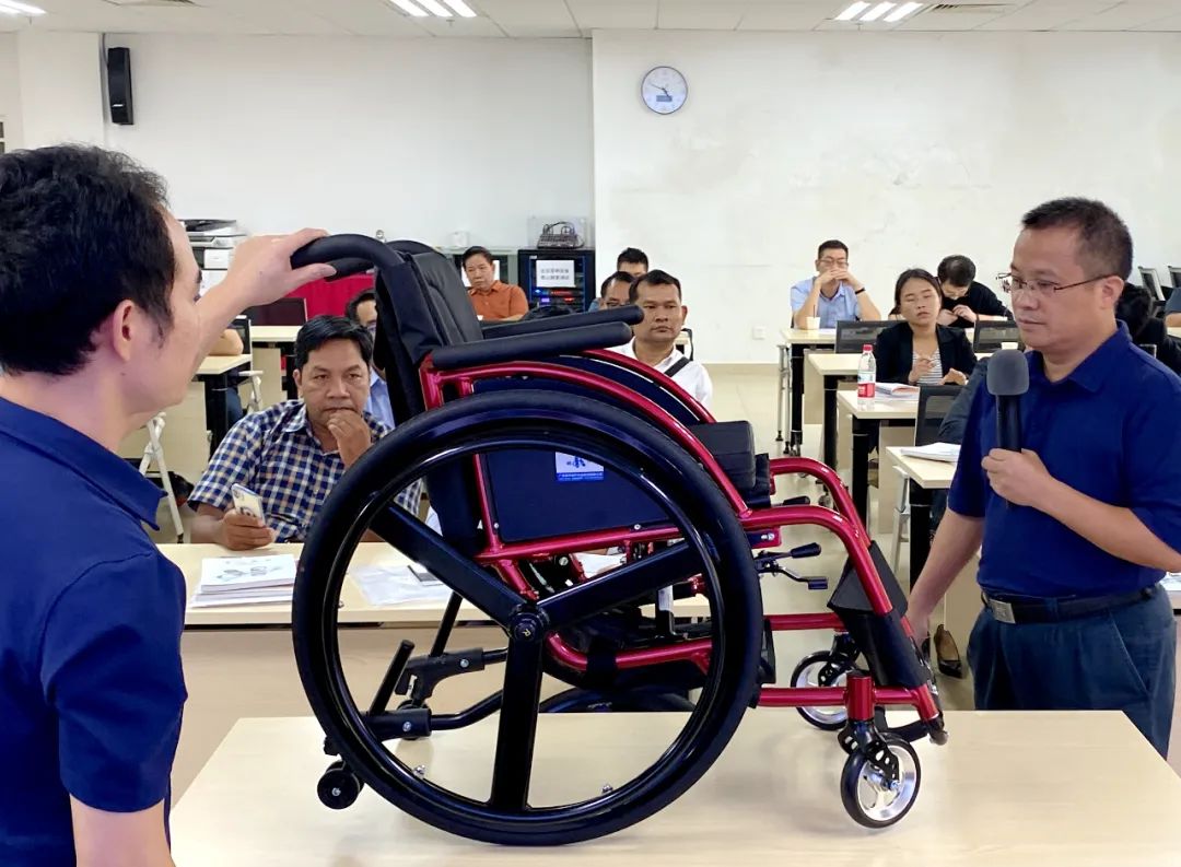 2023年9月19日至23日,瀾湄輔助器具項目培訓班在我國廣州舉辦。圖為中國殘疾人輔助器具中心老師為學員講解輔具知識。