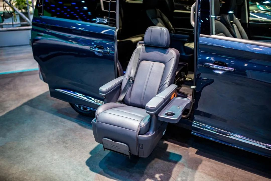 這款車(chē)搭載第二排電動(dòng)勻速升降座椅,可通過(guò)遙控器進(jìn)行操控,后排座椅可直接向外側(cè)旋轉(zhuǎn),方便殘疾人、老年人、孕婦等行動(dòng)不便人群上下車(chē)。