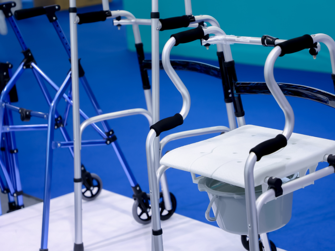 輕便型助行輔具:常見的有拐杖、拐杖凳、四腳拐等。還有三邊形的金屬框架助行器,其支撐面積大,穩(wěn)定性好,可將患者保護其中,便于站立或步行。升級版本還有電動助行器,并配備儲物空間等。