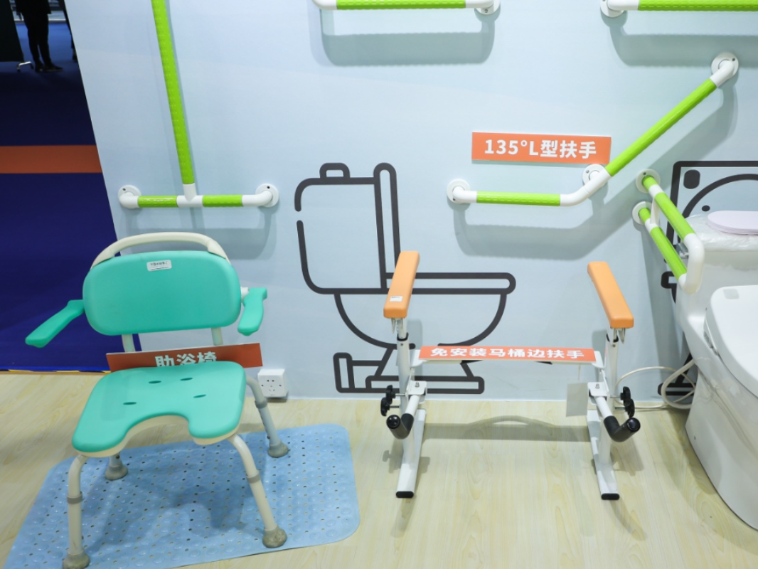 浴室扶手:通常可安裝在淋浴區(qū)、洗臉盆、馬桶旁,在長者彎腰或起身時提供助力,避免摔跤。