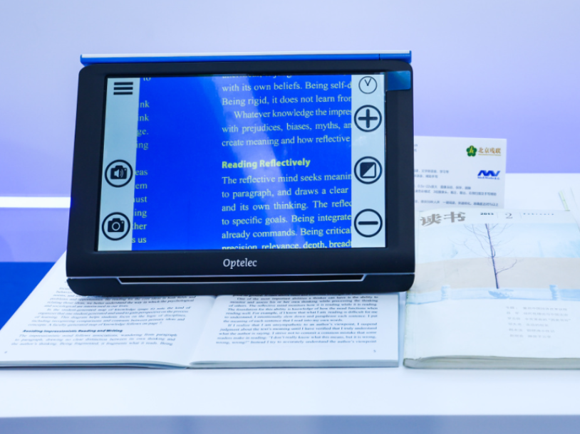 視覺上:可使用老花眼鏡、放大鏡、翻書器、放大字體的擴視機、折光菱鏡等,幫助老年人閱讀。