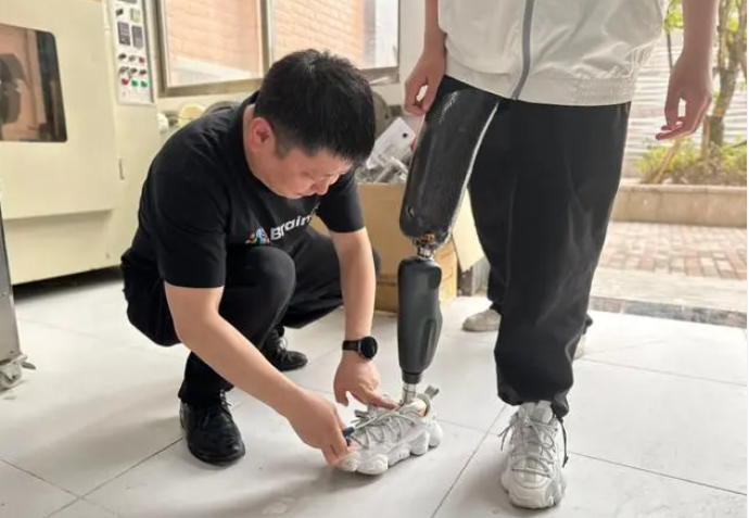 近日,在貴州省康復(fù)醫(yī)院“科技改變生活·輔具支撐夢(mèng)想——優(yōu)秀殘疾人代表智能假肢裝配公益活動(dòng)”現(xiàn)場(chǎng),貴州省殘疾人游泳隊(duì)隊(duì)員陳潔在工作人員的幫助下穿上了新適配的智能仿生假肢,開始了適應(yīng)訓(xùn)練。據(jù)了解,本次公益活動(dòng)是該醫(yī)院2023年度假肢矯形器裝配康復(fù)救助項(xiàng)目的一部分,計(jì)劃讓14位優(yōu)秀殘疾人通過(guò)適配智能仿生假肢,獲得更為強(qiáng)大的生活能力與職業(yè)潛能。