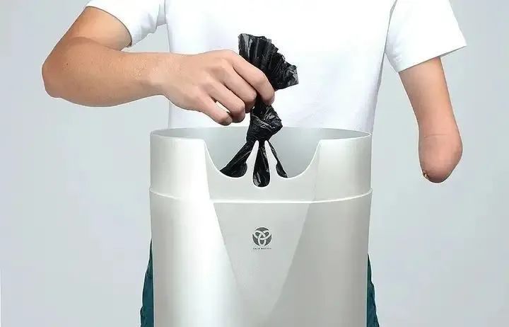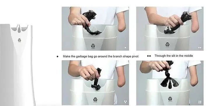為殘疾人設(shè)計的單手垃圾桶,可以單手輕松包扎好垃圾袋,讓少部分人的需求得到滿足,并且注重設(shè)計的美觀和耐用性。