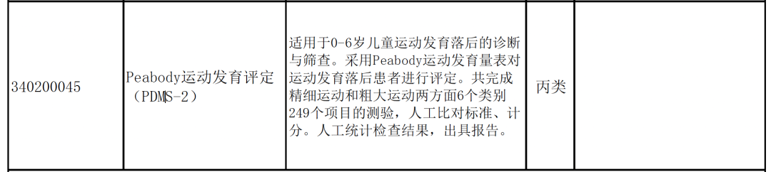 河南也將構(gòu)音障礙、職業(yè)能力評定、職業(yè)功能訓練等放進了基本醫(yī)保的康復類目錄。同時將Peabody運動發(fā)育評定也納入了醫(yī)保。