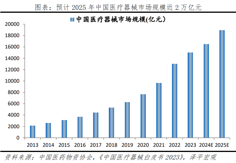 老齡化來臨,醫(yī)保體制日益健全,人均醫(yī)療保健消費(fèi)支出和衛(wèi)生費(fèi)用保持增長,眼科、心血管、骨科、口腔等醫(yī)療器械迎來機(jī)遇。在國家產(chǎn)業(yè)政策的支持和醫(yī)療衛(wèi)生體制改革的推動下,醫(yī)療器械行業(yè)呈現(xiàn)出長期穩(wěn)定增長的需求趨勢。據(jù)中國醫(yī)藥物資協(xié)會數(shù)據(jù),2022年中國醫(yī)療器械行業(yè)的市場規(guī)模約為1.3萬億元,預(yù)計到2025年將接近2萬億元。醫(yī)療器械行業(yè)中游細(xì)分產(chǎn)品包括高端植介入耗材、低端醫(yī)用耗材、醫(yī)療設(shè)備和體內(nèi)診斷等。隨著老齡化到來、醫(yī)保體制日益健全、人均醫(yī)療保健消費(fèi)支出和衛(wèi)生費(fèi)用保持快速增長等,眼科、心血管耗材、骨科、口腔耗材等與中老年息息相關(guān)的醫(yī)療器械迎來新機(jī)遇。具體來看: