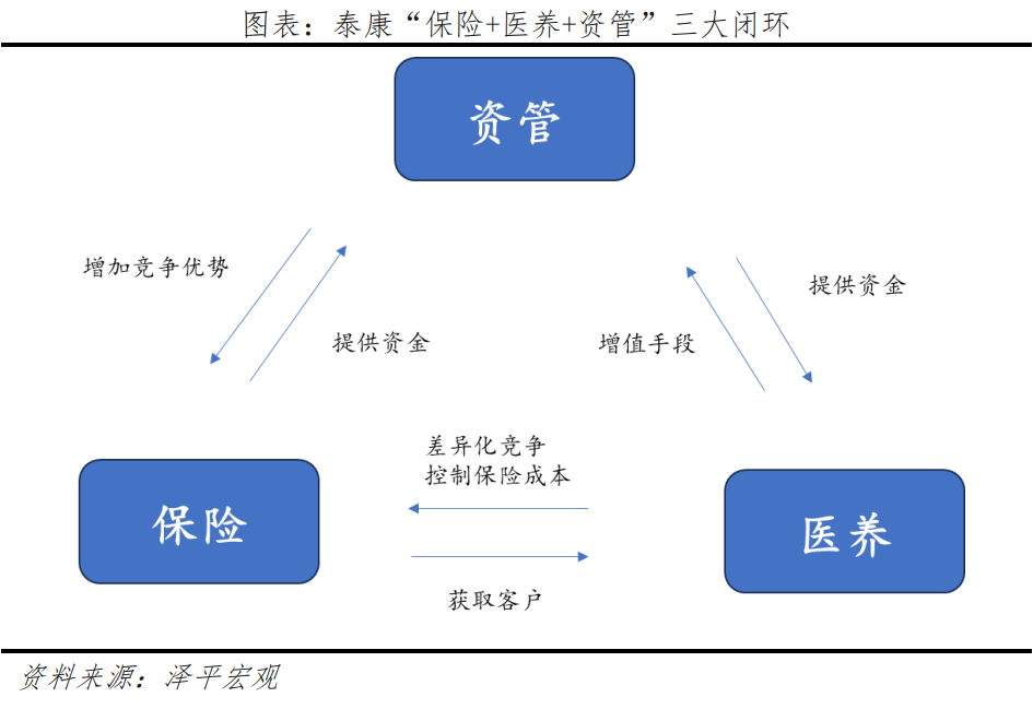 泰康通過跨界醫(yī)養(yǎng)產(chǎn)業(yè)布局,實(shí)現(xiàn)虛擬保險產(chǎn)品與實(shí)際醫(yī)養(yǎng)服務(wù)結(jié)合,構(gòu)建“保險+醫(yī)養(yǎng)+資管”三大閉環(huán)。泰康之家定位于高端養(yǎng)老服務(wù),致力于打造“都市醫(yī)養(yǎng)社區(qū)”??蛻敉ㄟ^購買泰康指定的養(yǎng)老保險產(chǎn)品,可在泰康的養(yǎng)老體系中享受養(yǎng)老服務(wù);通過購買健康保險產(chǎn)品,可在泰康的醫(yī)療健康體系中獲得醫(yī)療服務(wù);資產(chǎn)管理則為客戶的健康和養(yǎng)老需求儲備物質(zhì)財富。通過閉環(huán)整合,泰康之家有效控制保險成本,提升保險產(chǎn)品的市場競爭力。