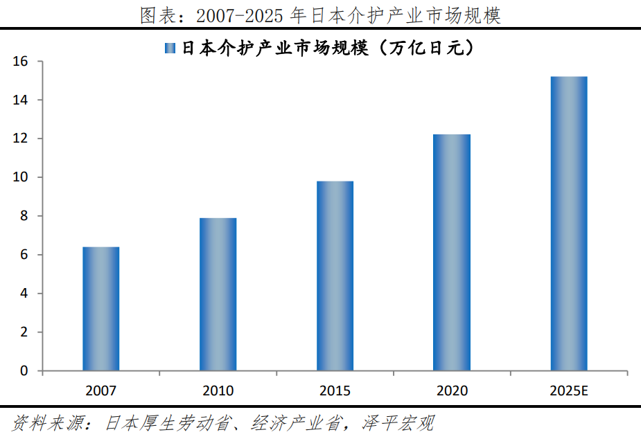 1)護(hù)理產(chǎn)業(yè)方面,日本介護(hù)市場規(guī)模持續(xù)快速增長,在《介護(hù)保險》支持下,老年人介護(hù)產(chǎn)業(yè)呈現(xiàn)出高度標(biāo)準(zhǔn)化、多樣化和個性化的發(fā)展特征。2007-2025年,平均年增長率在8%左右,遠(yuǎn)高于同期老年人口平均增長率(約2%)。老年人介護(hù)產(chǎn)業(yè)依托補(bǔ)貼與護(hù)理保險報銷政策,滿足全層次老年人個性化需求。SOMPO Care(日本財產(chǎn)保險公司)提供服務(wù)涵蓋機(jī)構(gòu)養(yǎng)老、居家護(hù)理和日間護(hù)理,覆蓋多樣化護(hù)理場景。