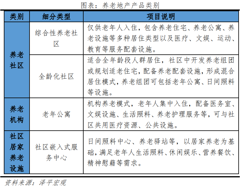 中國養(yǎng)老地產(chǎn)主要參與者包括房地產(chǎn)開發(fā)商、保險和養(yǎng)老服務(wù)企業(yè)。民營資本投資養(yǎng)老地產(chǎn)主要分為養(yǎng)老社區(qū)、養(yǎng)老機(jī)構(gòu)和社區(qū)居家養(yǎng)老設(shè)施三大類。其中,養(yǎng)老機(jī)構(gòu)多為中高端老年公寓,規(guī)模適中,提供生活照料、養(yǎng)老護(hù)理和健康文娛等服務(wù)。社區(qū)居家養(yǎng)老設(shè)施為社區(qū)嵌入型養(yǎng)老機(jī)構(gòu),規(guī)模較小,位于成熟社區(qū)中,專注于提供社區(qū)居家養(yǎng)老服務(wù)。