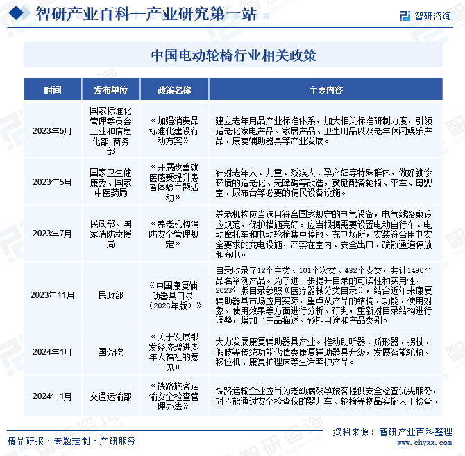 中國政府高度重視老年人福祉和康復輔助器具產(chǎn)業(yè)的發(fā)展,相繼出臺了一系列政策,旨在推動產(chǎn)業(yè)創(chuàng)新和升級。這些政策不僅提供了稅收優(yōu)惠、資金補貼等激勵措施,還鼓勵了金融機構(gòu)和社會資本對電動輪椅行業(yè)的投資,促進了行業(yè)技術(shù)進步和市場擴大。政府的這些舉措為電動輪椅行業(yè)的發(fā)展提供了良好的政策環(huán)境和資金支持。