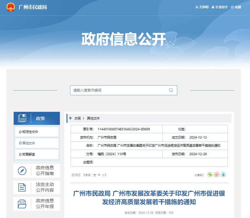 近日,經(jīng)廣州市人民政府同意,《廣州市民政局 廣州市發(fā)展改革委關(guān)于印發(fā)廣州市促進(jìn)銀發(fā)經(jīng)濟(jì)高質(zhì)量發(fā)展若干措施的通知》(穗民〔2024〕110號(hào),下稱《措施》)正式出臺(tái)?!洞胧穼?duì)標(biāo)對(duì)表《國務(wù)院辦公廳關(guān)于發(fā)展銀發(fā)經(jīng)濟(jì)增進(jìn)老年人福祉的意見》26項(xiàng)舉措和7大潛力產(chǎn)業(yè),結(jié)合我市重點(diǎn)產(chǎn)業(yè)審視、業(yè)務(wù)圖譜初步成果和老年人需求深化調(diào)研成果,聚焦老年人高頻需求和我市優(yōu)勢(shì)產(chǎn)業(yè),從民生事業(yè)、重點(diǎn)賽道和支撐保障三個(gè)方面提出10條操作性強(qiáng)的措施。