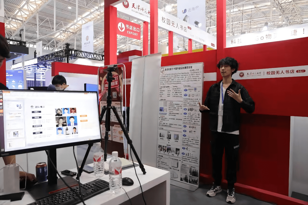 天津理工大學(xué)鯨言創(chuàng)益無障礙智能科技團(tuán)隊也用時近5年時間,構(gòu)建起了一個包含30余萬條視頻的語料庫,打造出了手語實(shí)時翻譯系統(tǒng),可將手語實(shí)時翻譯為語音或文字。