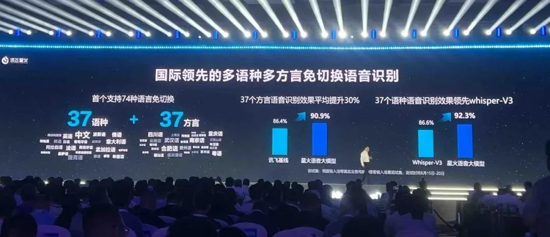 語音能力作為科大訊飛的領(lǐng)先優(yōu)勢(shì),去年年初科大訊飛便在星火大模型V3.5的更新中,首次對(duì)外發(fā)布了星火語音大模型,對(duì)于37種主流語種的語音識(shí)別效果已超過OpenAI Whisper V3。在后續(xù)的星火大模型V4.0發(fā)布會(huì)上。除了之前已有的37個(gè)主流語種,還新增了37種方言,這代表著使用者可以多語種和方言隨意切換。
