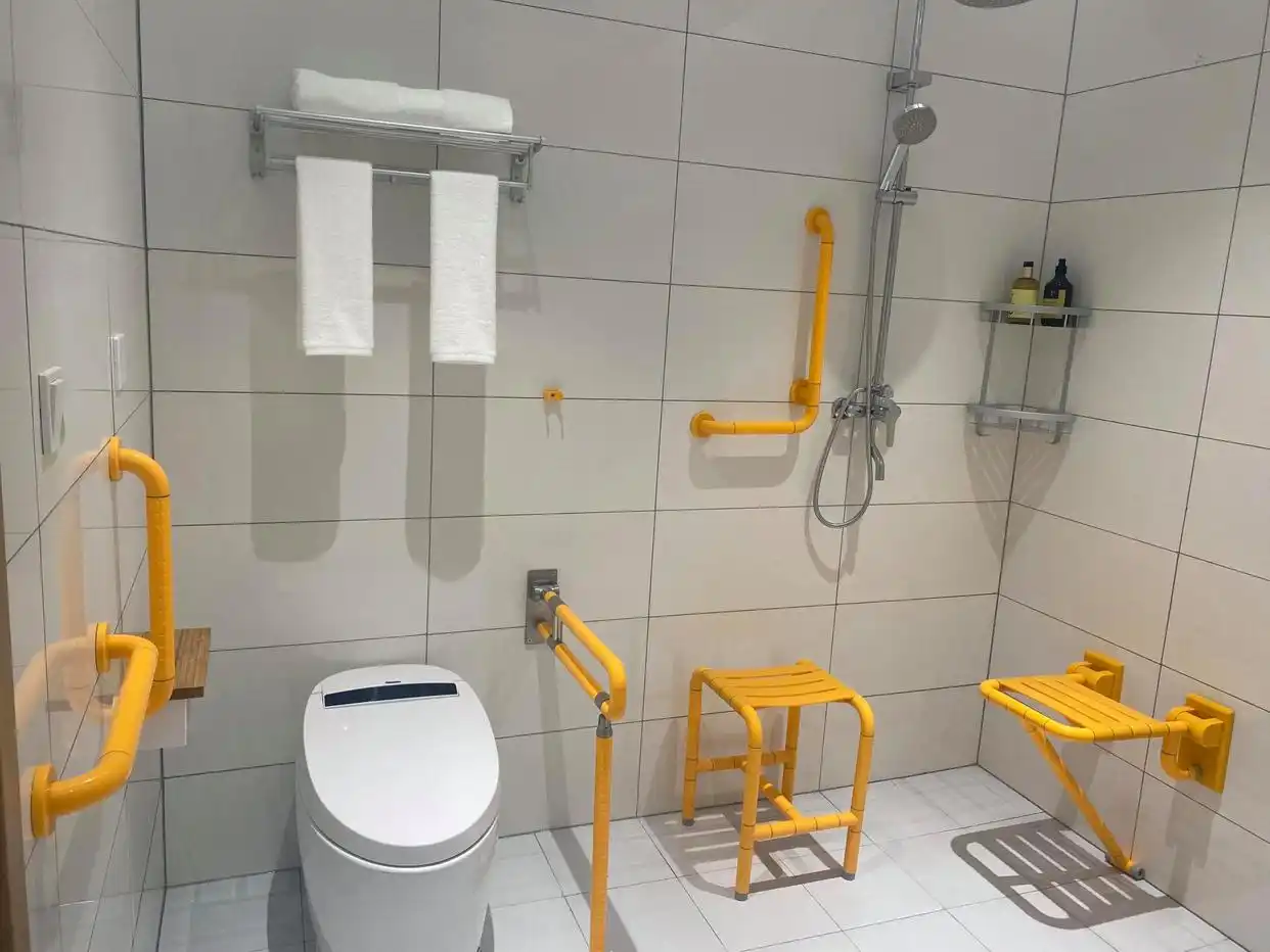 提升便捷性:無障礙設計可以簡化老年人的日常生活流程,減輕他們的負擔。例如,在衛(wèi)生間設置無障礙設施,方便老年人自主完成洗漱、如廁等活動;在走廊、樓梯等區(qū)域設置扶手,方便老年人行走;在餐廳設置合適高度的餐桌和餐椅,方便老年人用餐等。這些設計都能提高老年人的生活便捷性,讓他們在日常生活中更加輕松自如。