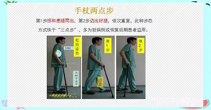 使用助行器時(shí),要注意正確姿勢和安全性,以避免受傷并確保最佳使用效果。此外,關(guān)于助行架的使用,每次活動前都應(yīng)仔細(xì)檢查其穩(wěn)定性,以及橡皮墊或螺絲是否有損壞或松動,以確保使用時(shí)的安全性,防止意外跌倒。請穿著長度適宜的褲子和具有防滑功能的鞋子,避免穿著拖鞋。在行走過程中,請保持眼睛平視前方,注意抬頭挺胸收腹,步伐不宜過大,以免因重心不穩(wěn)而跌倒。對于上、下肢衰弱、不協(xié)調(diào)或上、下肢均受累而無法通過腕、手負(fù)重的患者,使用助行器可能并不適宜。髖關(guān)節(jié)置換者在使用助行器時(shí),建議朝患側(cè)轉(zhuǎn)彎,且轉(zhuǎn)彎角度不宜過大,以防假體脫位。