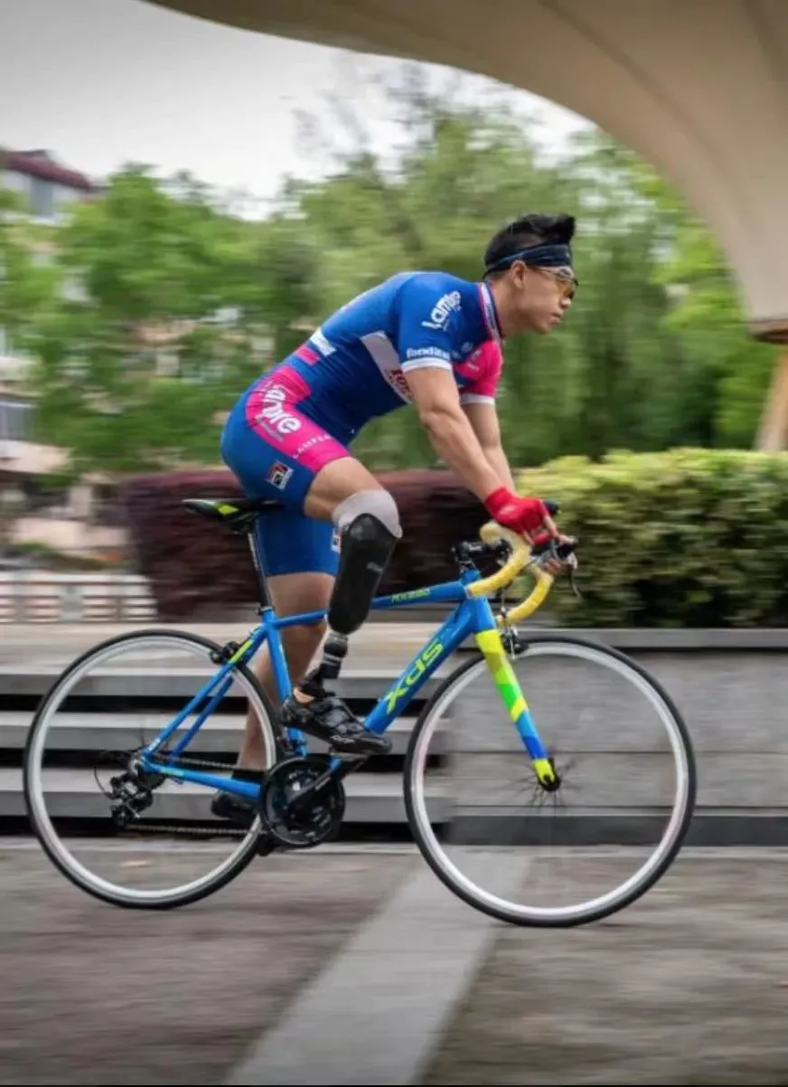 康復后,他瞞著家人報名參加了一場環(huán)青海湖騎行——確實會遇到些麻煩,比如一出汗就會讓假肢的接受腔變得不爽利,但時不時停下來擦一擦就好了,這不是什么阻礙他的理由。