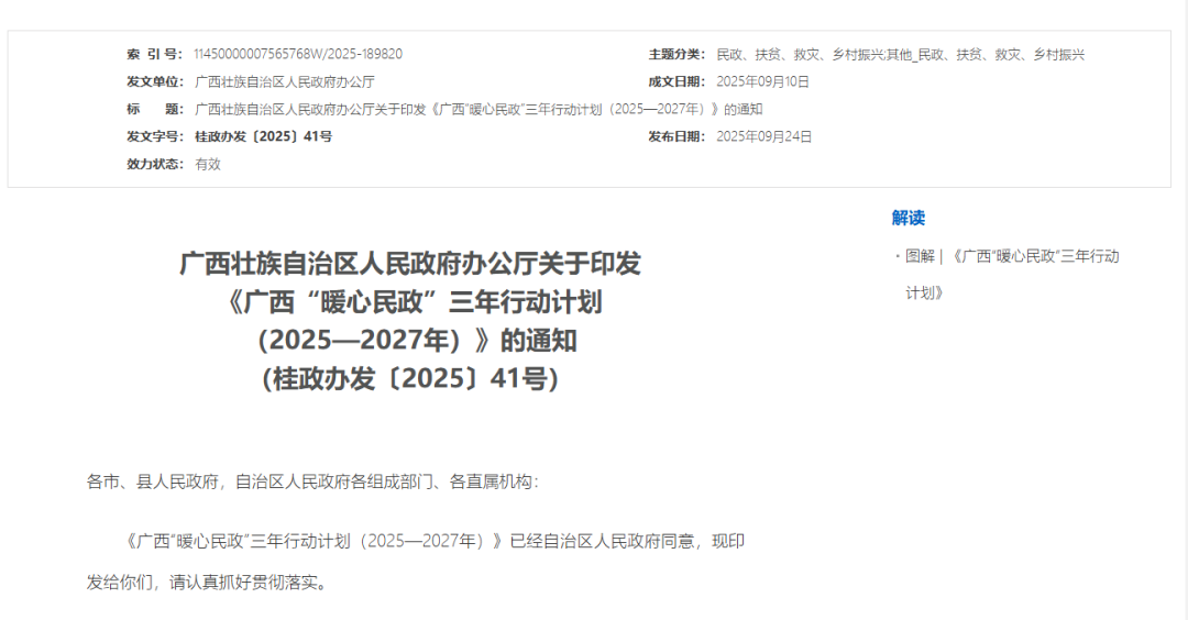 日前,《廣西“暖心民政”三年行動計劃(2025—2027年)》發(fā)布,為今后3年民政工作作出總體設(shè)計,提出22條發(fā)展所需、群眾所盼、有溫度有力度的重點政策舉措,加快解決群眾急難愁盼問題。在“暖心民政”三年行動計劃里,廣西將持續(xù)增加普惠養(yǎng)老服務(wù)供給,培育發(fā)展200個以上社區(qū)嵌入式養(yǎng)老服務(wù)設(shè)施、400個以上農(nóng)村“家門口”養(yǎng)老服務(wù)站,讓老年人實現(xiàn)就近就便養(yǎng)老。今年年底前,廣西將按照國家部署,為中度以上失能的老年人發(fā)放電子消費補(bǔ)貼券,進(jìn)一步減輕老年人養(yǎng)老的經(jīng)濟(jì)負(fù)擔(dān)。