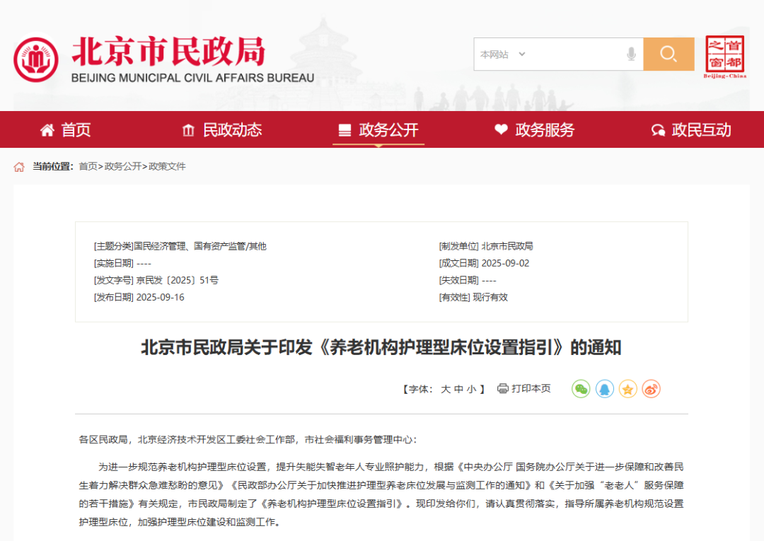 北京出臺養(yǎng)老機(jī)構(gòu)護(hù)理型床位設(shè)置指引