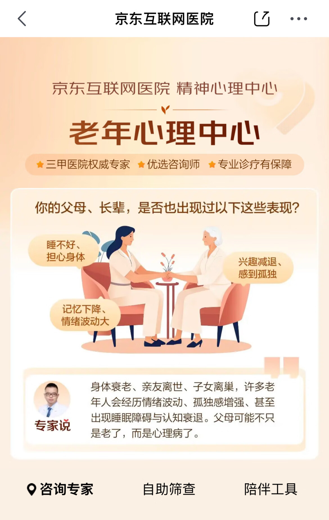 京東互聯(lián)網(wǎng)醫(yī)院上線老年心理門(mén)診